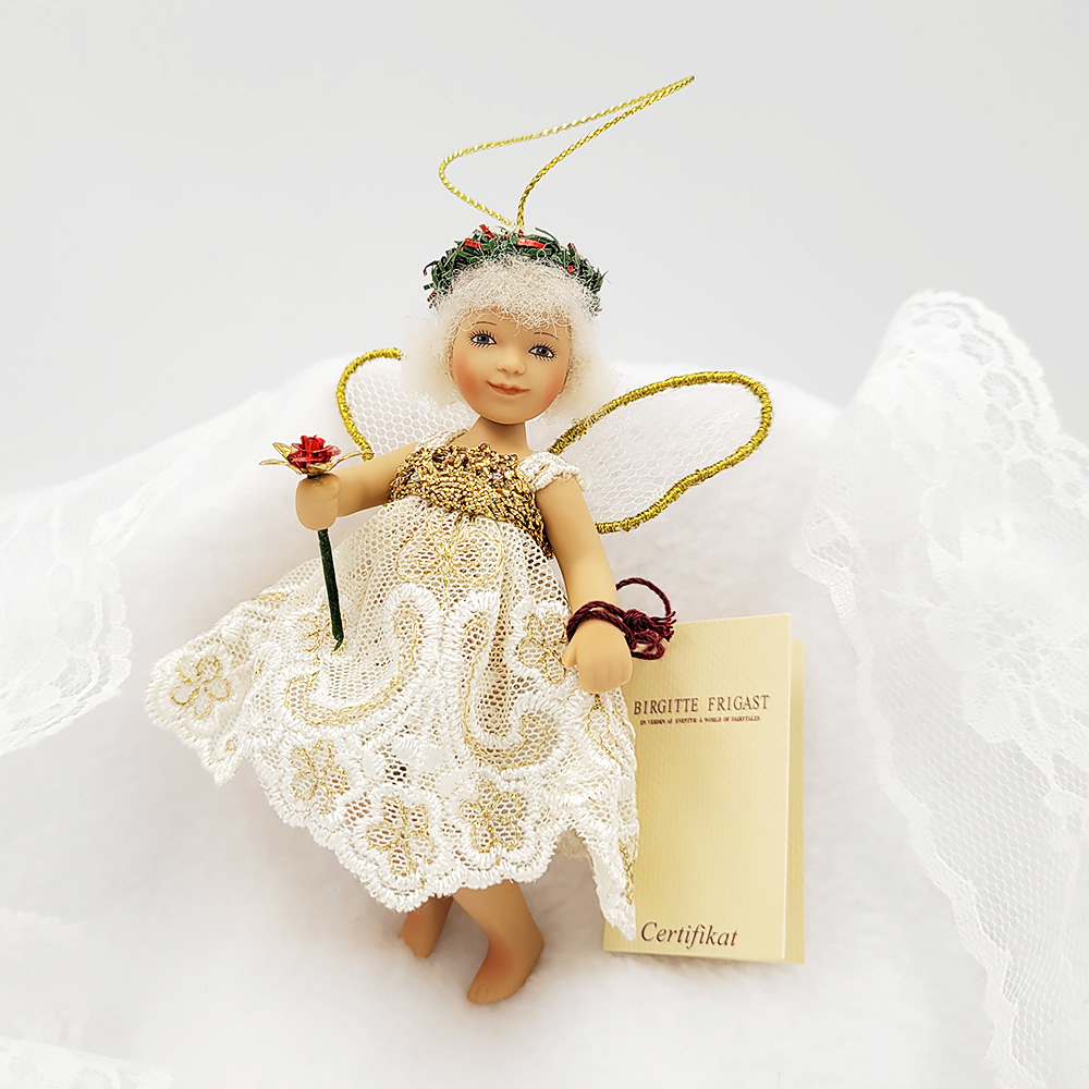 Босоногий Ангел с волшебной вишенкой, воздушными крыльями за спиной, в кружевном платье ручной работы — станет отличным подарком, украсит любой интерьер. Все куклы Birgitte Frigast достойны внимания не только коллекционеров, они живут в обычных домах в разных странах мира, радуя и вдохновляя своих хозяев.
