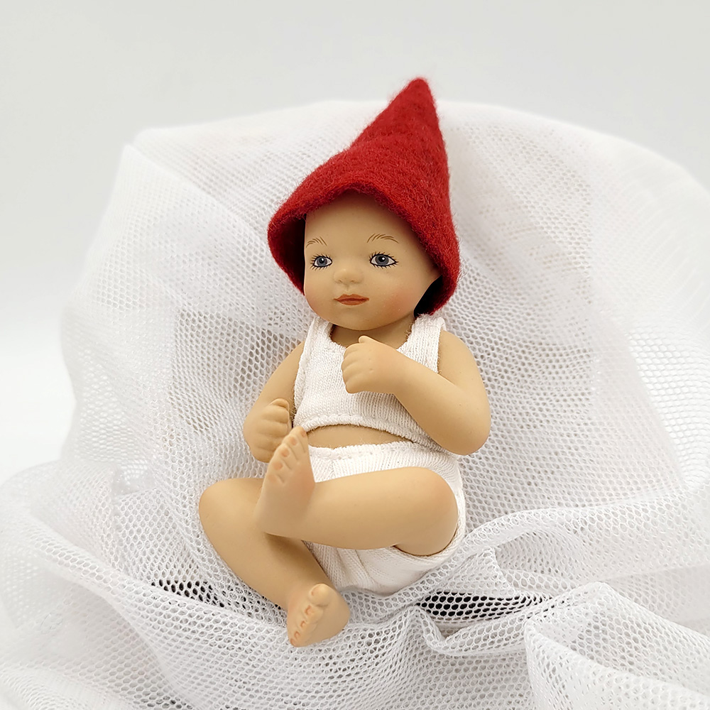 Голова, ручки и ножки куклы выполнены из высококачественного фарфора, имеющего идеально гладкую поверхность, защищенного от выцветания. Наряд куклы пошит из высококачественных натуральных материалов. Одежда, деревянные башмачки, колпачок удивительно гармонируют и помогают поверить, что перед Вами действительно сказочный персонаж.