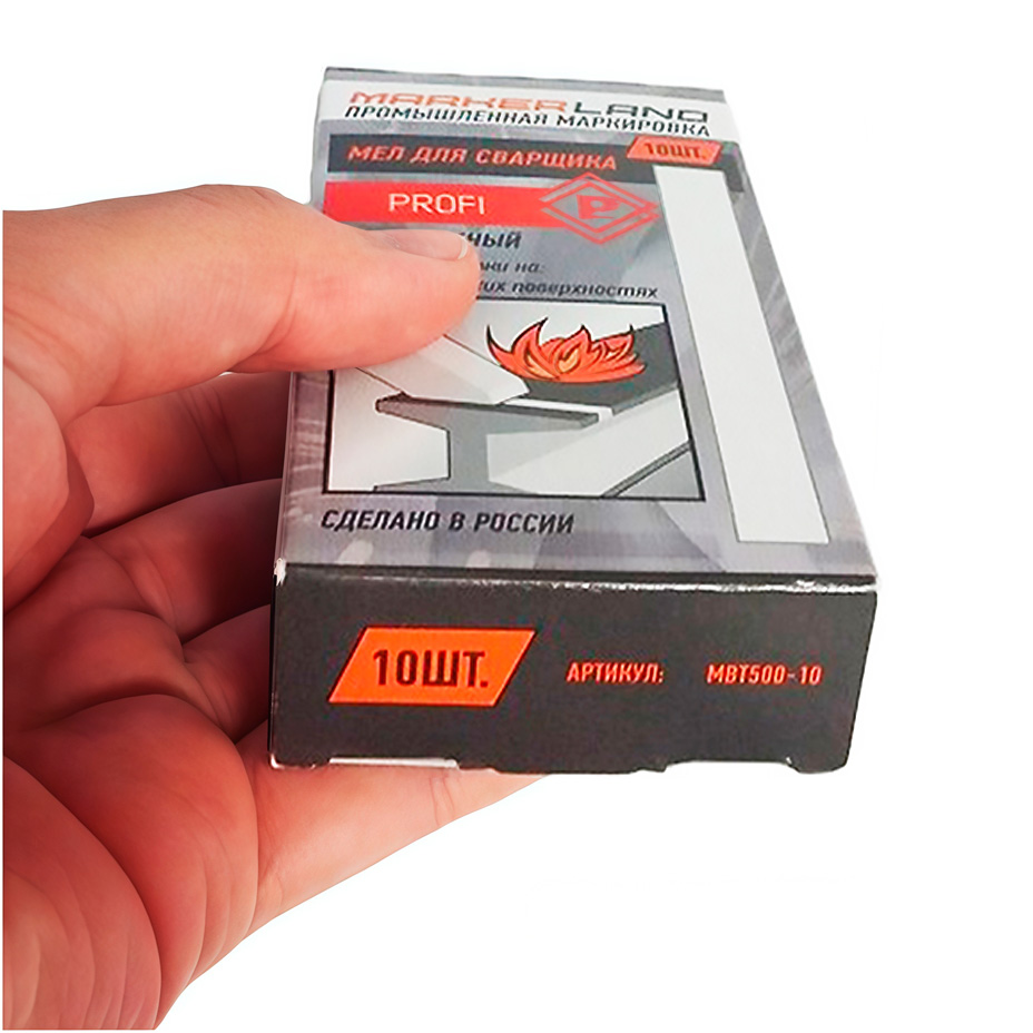 Тальковый мелок выдерживает до +1530°С, не выгорает и не сдувается пламенем при работе с кислородными резаками.